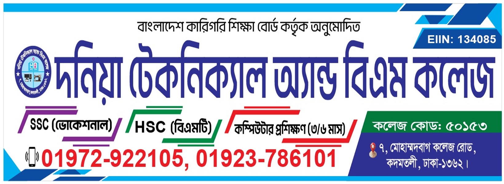 দনিয়া টেকনিক্যাল অ্যান্ড বিএম কলেজ একটি উদীয়মান শিক্ষা প্রতিষ্ঠান যা প্রযুক্তিগত ও ব্যবসায়িক শিক্ষায় উৎকর্ষ সাধনের লক্ষ্য নিয়ে প্রতিষ্ঠিত হয়েছে। আমাদের মিশন হল শিক্ষার্থীদের জন্য একটি সমৃদ্ধ শিক্ষামূলক পরিবেশ সৃষ্টি করা যা তাদের দক্ষতা, জ্ঞান, ও আত্মবিশ্বাস বৃদ্ধি করে।